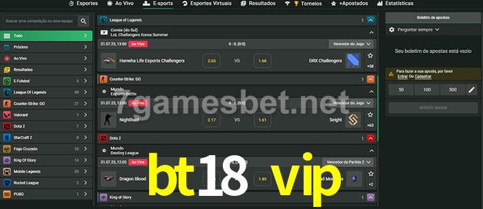 O bt18 vip oferece uma grande seleção de opções de apostas em e-sports com probabilidades competitivas